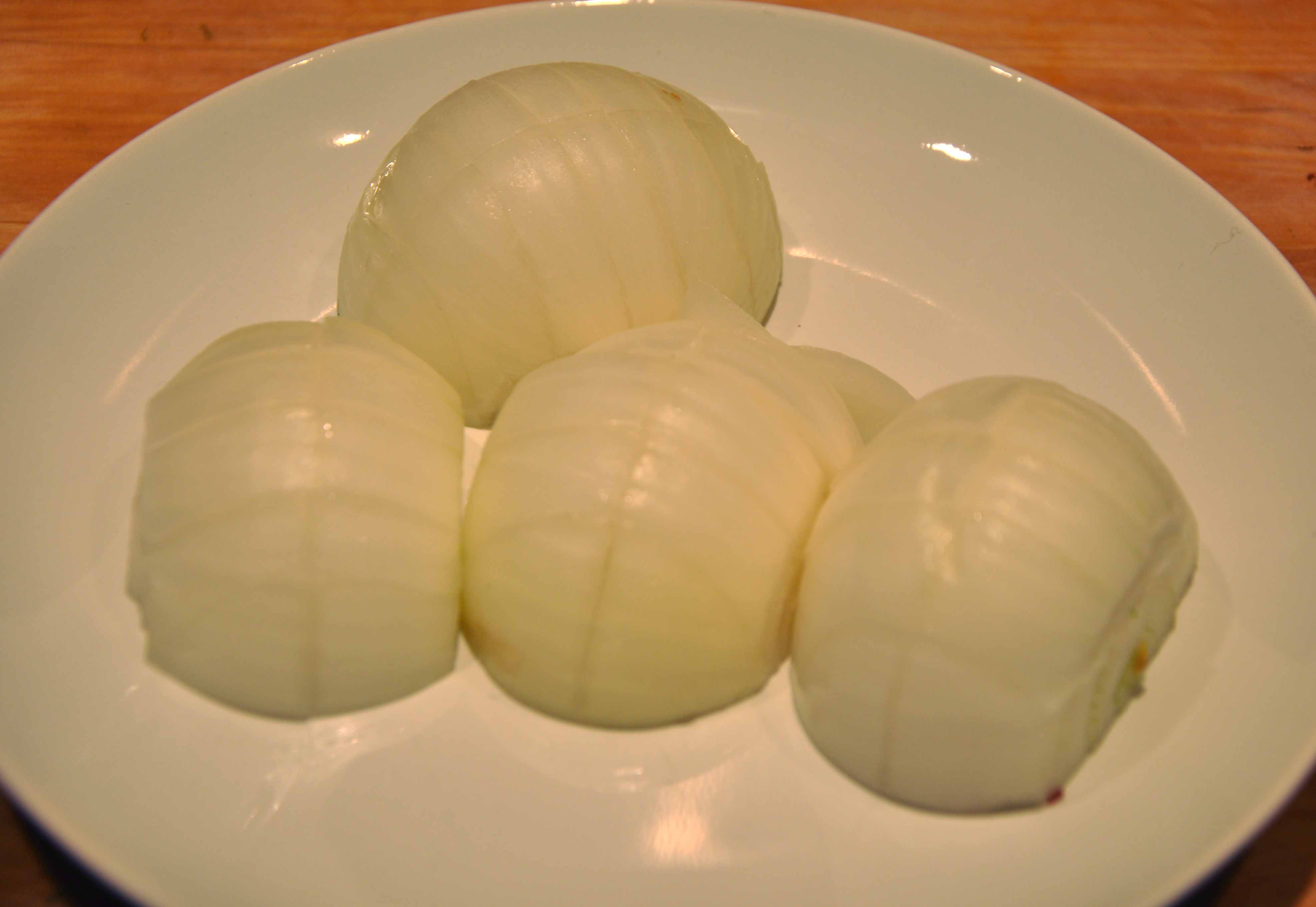 While the Lamb is browning, dice the onion and crush the garlic.