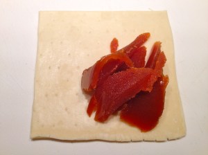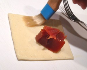 I have a million memories of summers spent in Miami with my family where my dad would call me into his room and say “Emmy, bring me a pastelito de guayaba from Gilberts” and so I would have to go out and drive to casa del coño to get him one*. I would of course get myself one, and maybe a croquetica, but that’s another post. So of course when I go to Miami, I drive to Gilberts and get pastelitos de guayaba. Here in Seattle though, I can’t seem to find them anywhere. I tried making them with guava paste and puff pastry at home and they came out ok. Sadly, try as I might I couldn’t get the glaze on the top that I LOVE on the pastelitos from back home. That was, until I added a teaspoon of sugar to the egg wash. That was the trick and now I make the best damn pastelitos. The puff pastry is flaky and crispy and the interior is gooey and sticky and sweet. I find that the brand of puff pastry doesn’t make as much a difference, and neither does the brand of guava paste.