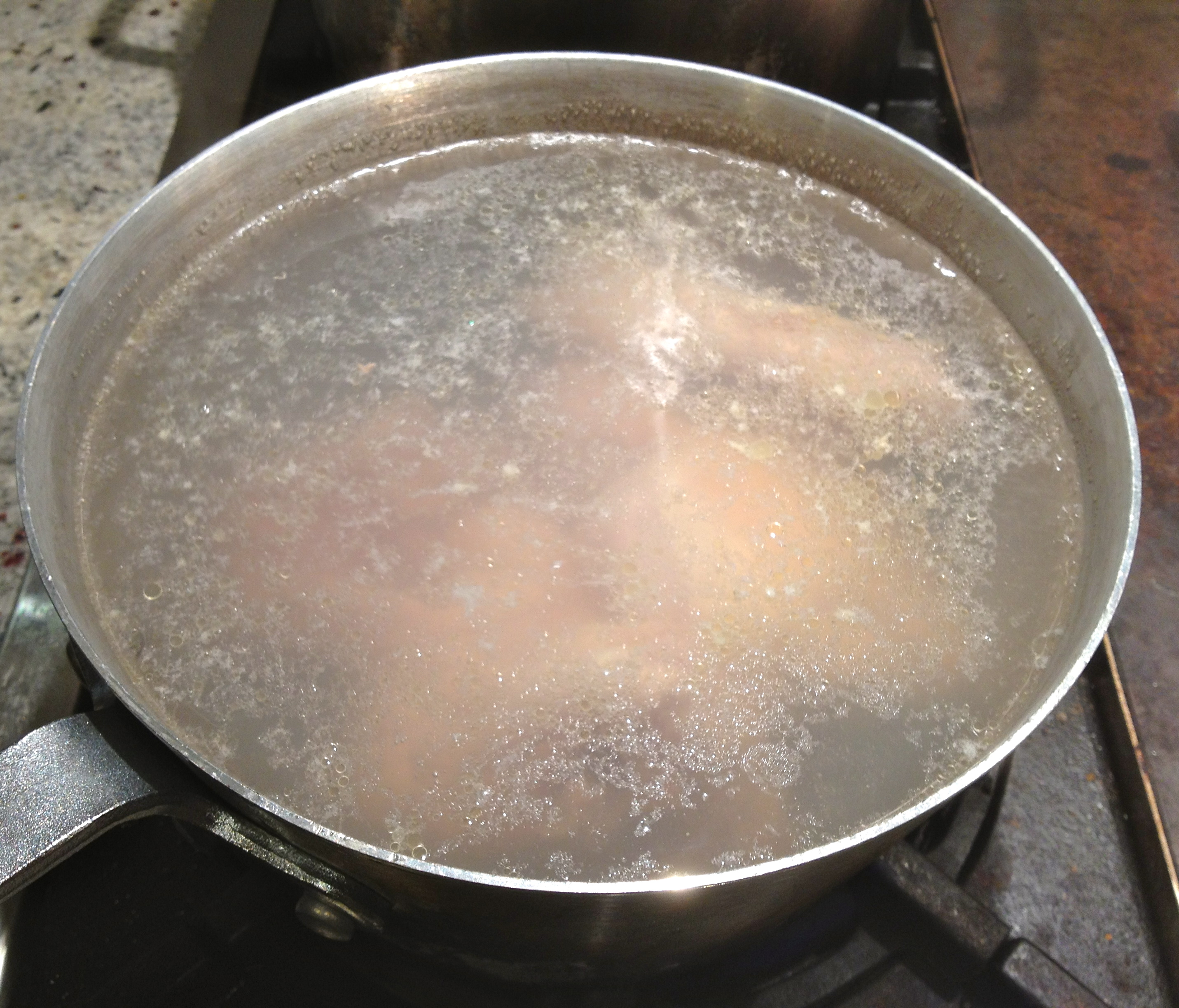 Some of my previous attempts at making chicken stock ended with a liquid that was a bit funky. I usually save my carcases and freeze them so I don’t think it’s unfair to say that the ingredients may not have been the freshest and that might have contributed to the unpleasant flavors. However, even when I bought chicken wings for stock it often came out 70s funky. So as I do whenever I have a question that needs answering, I did my research and discovered that in most Asian cultures, they boil the bones, strain them and then make stock with them. Sort of like a 3-5 minute pre-boil. This method, it turns out, not only removes the funk, but almost all need for skimming as there is hardly any scum on the top of the pot.
