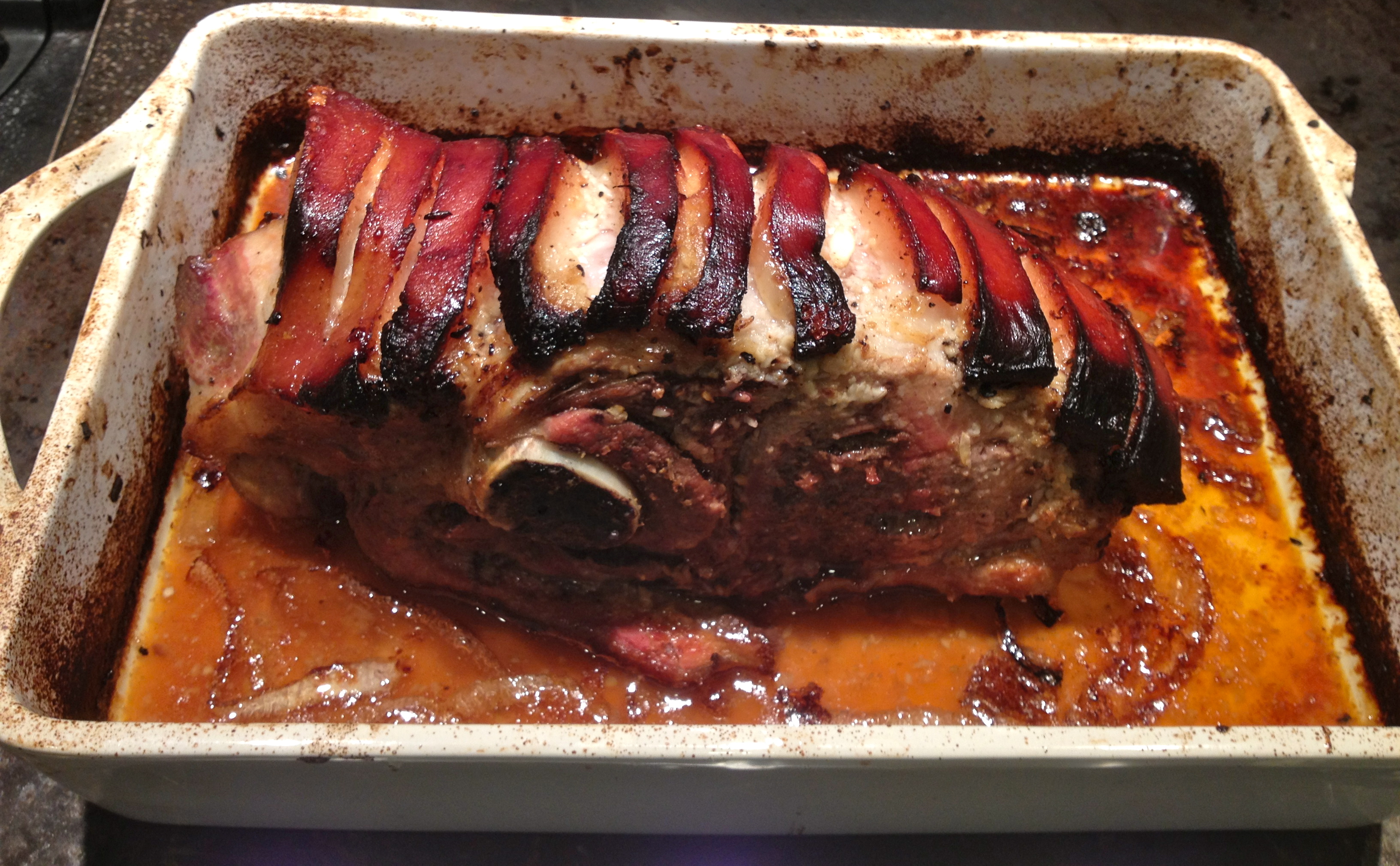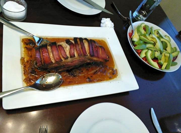Once the roast is done allow to rest for at least 10 minutes before slicing. Serve with and avocado and tomato salad, rice and beans**