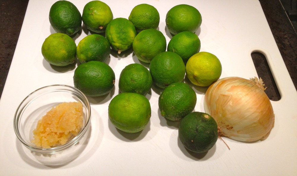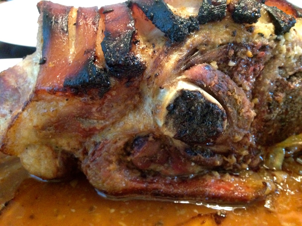 In Cuban cuisine, Lechon refers to a whole pig marinated in mojo and cooked either over a fire or, as is more common now in Miami, in La Caja China. Now a days, however, the name is used as a sort of blanket term for any pork roast cooked in mojo. It is the main dish at almost every Cuban party and it is what my family and I ate at almost all our family gatherings. The smell of this roasting in the oven transports me back to my childhood and the happy times when my grandparents and father were still alive and I didn’t have a mortgage and a job. This particual roast I made for a dinner party I had at my house last weekend with some dear friends of mine Rachel and Omeed. They had taken me to a “Cuban/Puerto Rican” restaurant in Seattle and after tasting the food there I told them I had to make them proper Cuban food so they’d know what they were missing. The recipe I present to you below is what I made for them. I learned this recipe from my mother and grandmother and I have adapted it to make up for the unfortunate lack of sour orange in the Pacific Northwest. If you are somewhere were you can get Sour Orange replace 4 limes for two sour oranges.